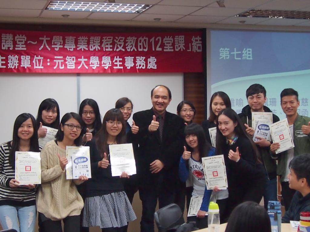 这学期还非常幸运的参加了一个培训「大学专业没教的12堂课」,并且得到了元智大学校长亲手颁发的结业证书。这12堂课分别从团队合作、问题解决、企划能力、国际宏观、职场认知、工作态度、职场伦理、简报能力、职场趋势、沟通能力、英文求职和职场礼仪来培训我们,提早做好优势管理,在职场中脱颖而出。这些软实力是从己身出发,透过与他人及团队的合作,延伸到职场环境中,最后希望能扩展国际视野,与国际接轨,成为具有全球流通力( Global Mobility)的优质人才。