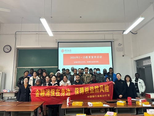 2024年3月14日下午,国际学院邀请中国银行淮南分行和淮南市银监局的工作人员在明理北103教室举办“3.15教育宣传活动—中国银行金融知识讲座”,在校留学研究生参加了本次讲座。