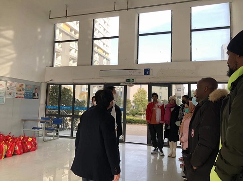 2023年1月19日下午,副校长孟祥瑞来到平苑研究生公寓1号楼,看望慰问寒假在校外国留学研究生,为他们送上大米和春节礼包等慰问品,传达学校的关爱和新春祝福,受到留学生们的热烈欢迎,大厅里洋溢着春节的氛围。
