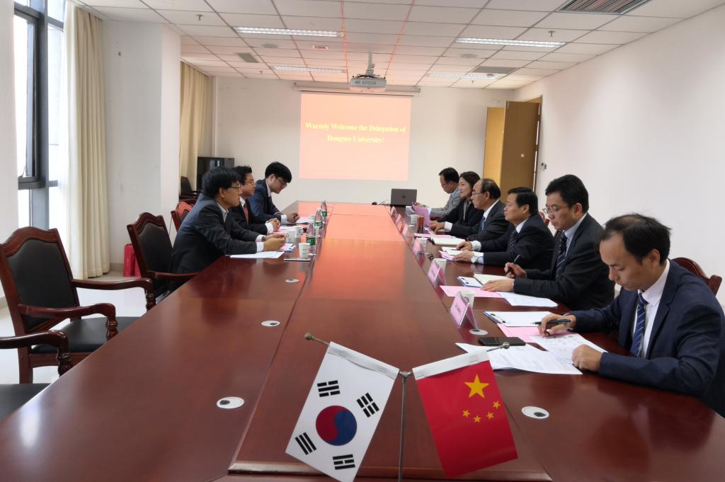 10月18日,副校长郑明东在行政楼12楼会议室会见了韩国东西大学国际处处长韩京镐一行三人。双方进行了交流座谈,协商两校中外合作办学项目外方课程教学安排等具体合作事宜。