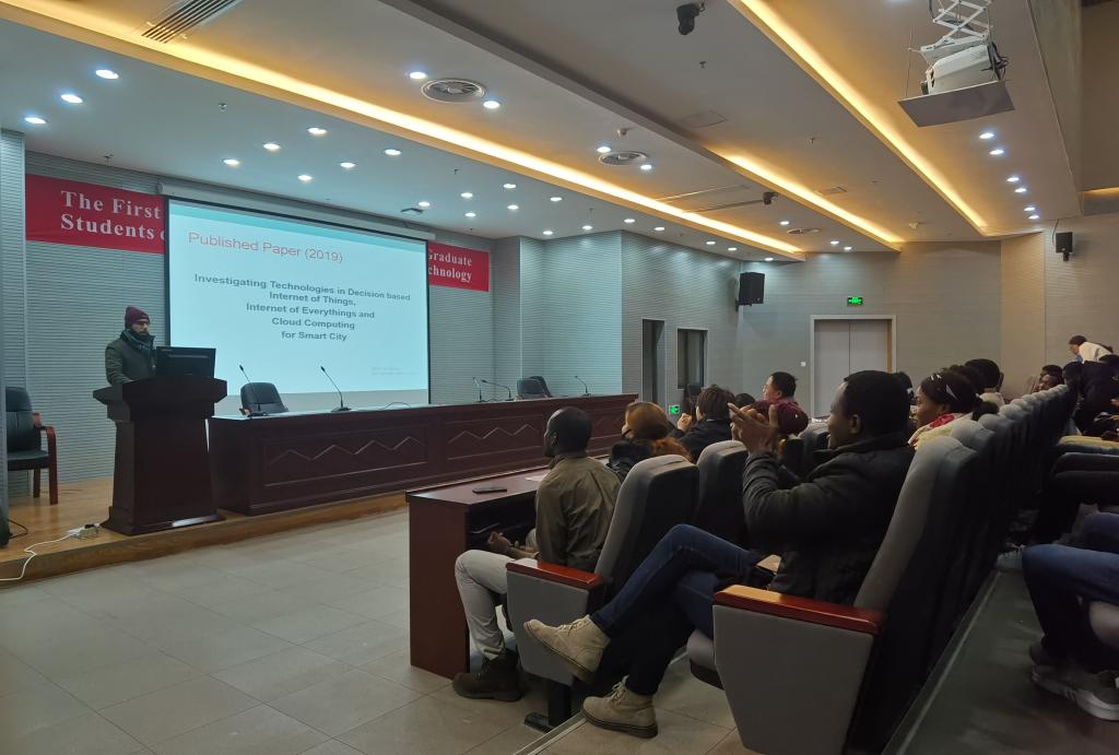 接下来,论坛进入留学生报告环节。来自6个学院的13名留学研究生代表分别做PPT展示,与参会师生分享各自的研究兴趣和研究成果。点评老师逐一进行了点评指导。