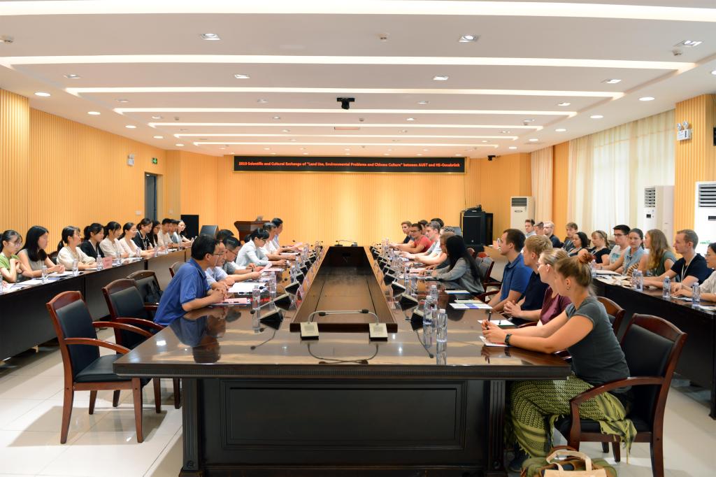 此次中德大学生“土地利用、环境问题与中国文化”科技文化交流活动为期7天(9月8日至14日),由地球与环境学院承办。地球与环境学院负责人介绍了活动主要内容,并表示学院将认真做好组织协调工作。活动期间,双方师生将进行地质构造、采煤塌陷区水资源利用、煤矿开采沉陷预测等方面的学术交流,共同参与土壤特性、水质分析、地下物体探测等项目实践,赴八公山及潘集煤矿生态修复区等地进行地质考察,共同参与社团活动并体验淮南风土人情。