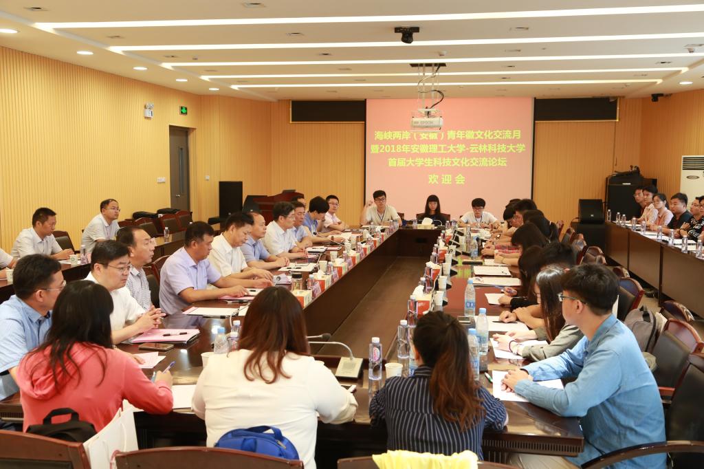 7月9日上午,海峡两岸(安徽)青年徽文化交流月暨2018年安徽理工大学—云林科技大学首届大学生科技文化交流论坛开幕式在舜耕苑二楼会议室举行。校党委书记郭永存,省台湾事务办公室副主任汪泗淇,淮南市委常委、宣传部长、统战部长许承通出席开幕式。