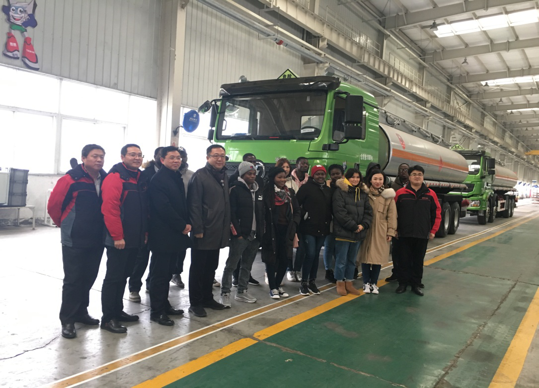 在陕汽淮南公司,留学生们受到企业领导和员工们的热烈欢迎,公司总经理等领导班子成员全程陪同,先后参观了汽车装配车间、喷漆车间、整车交付区、公司展示中心等。留学生们纷纷表示赞叹,如此大型专用汽车生产企业在自己国家并不多见。